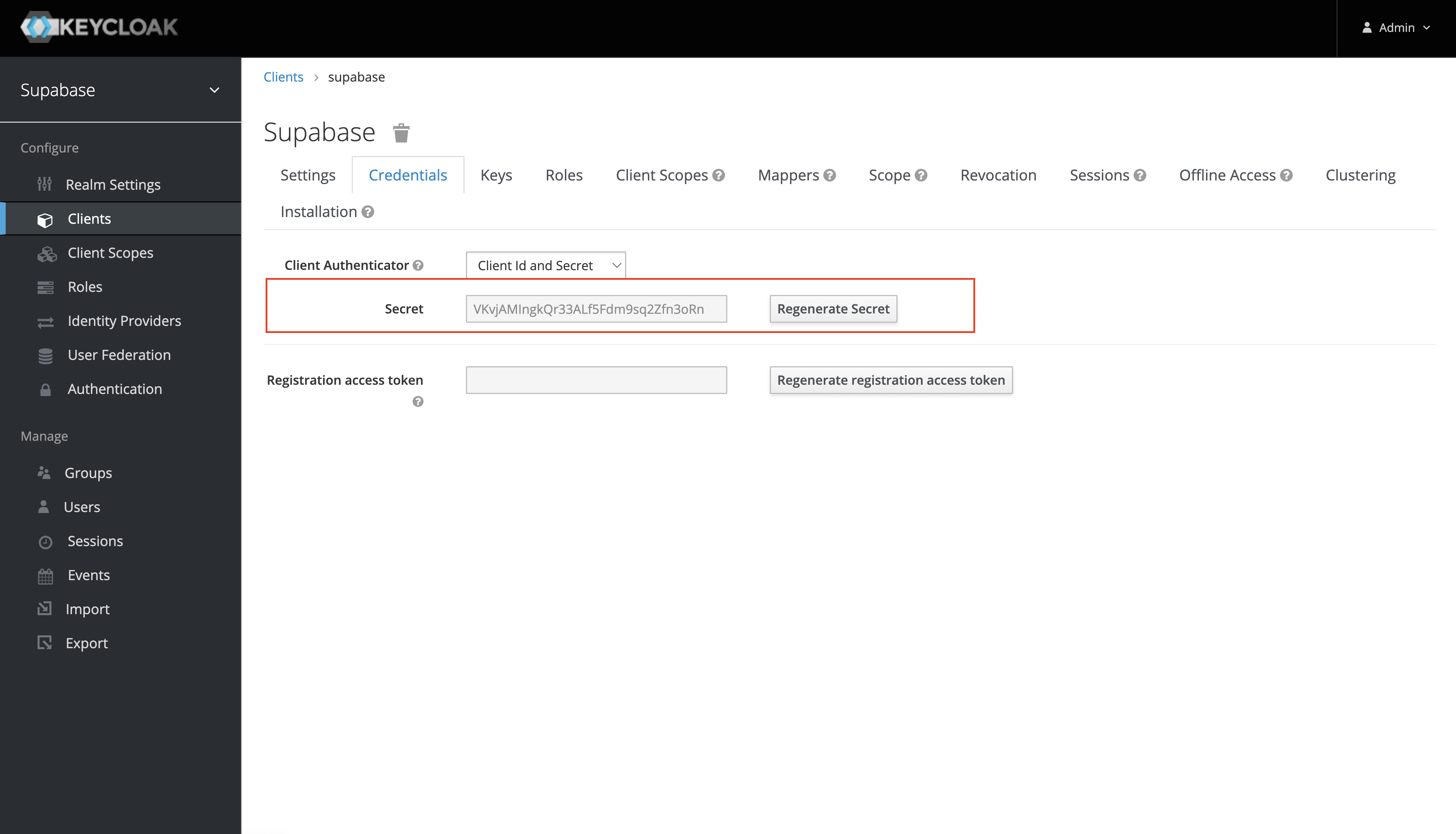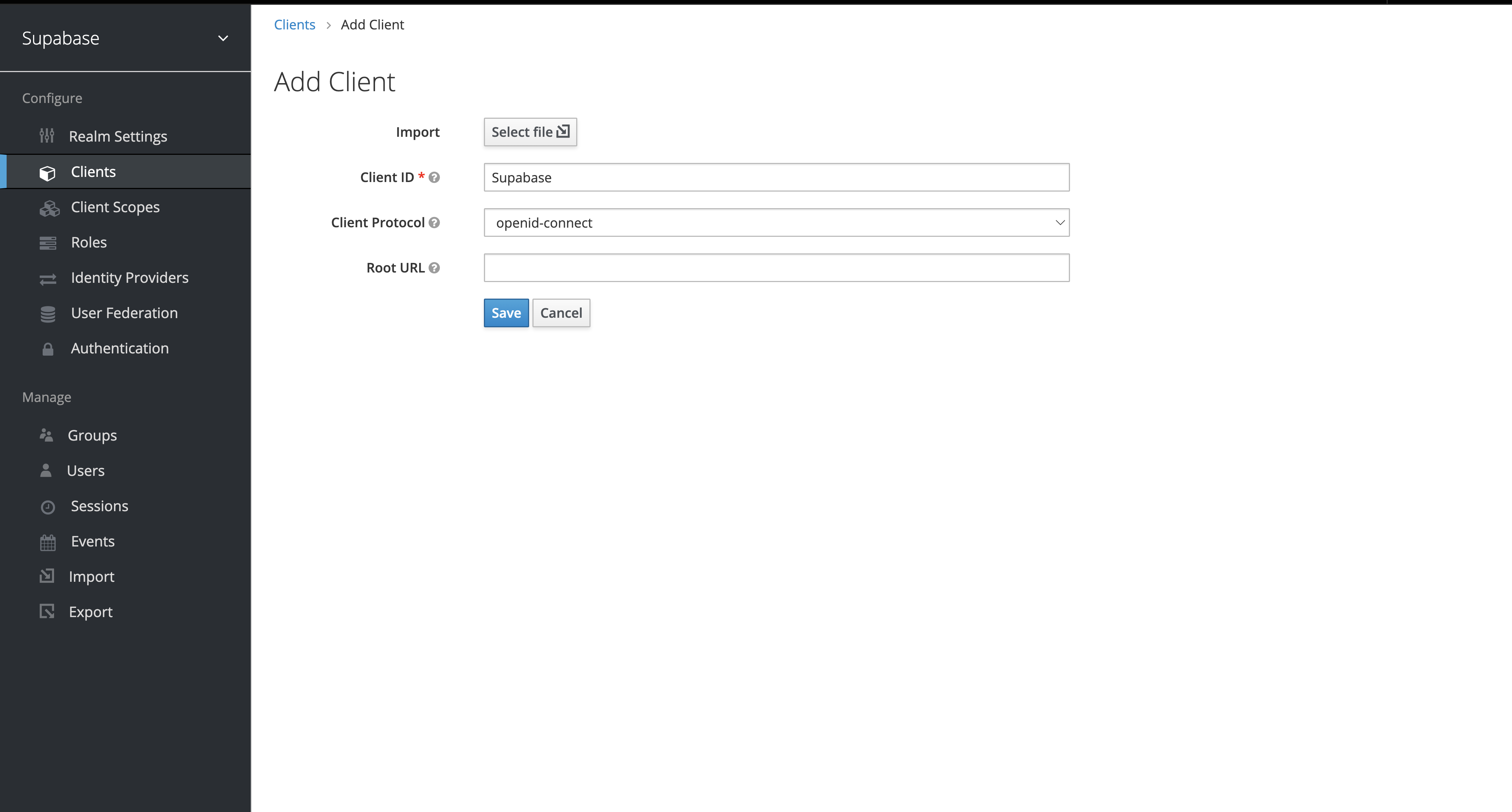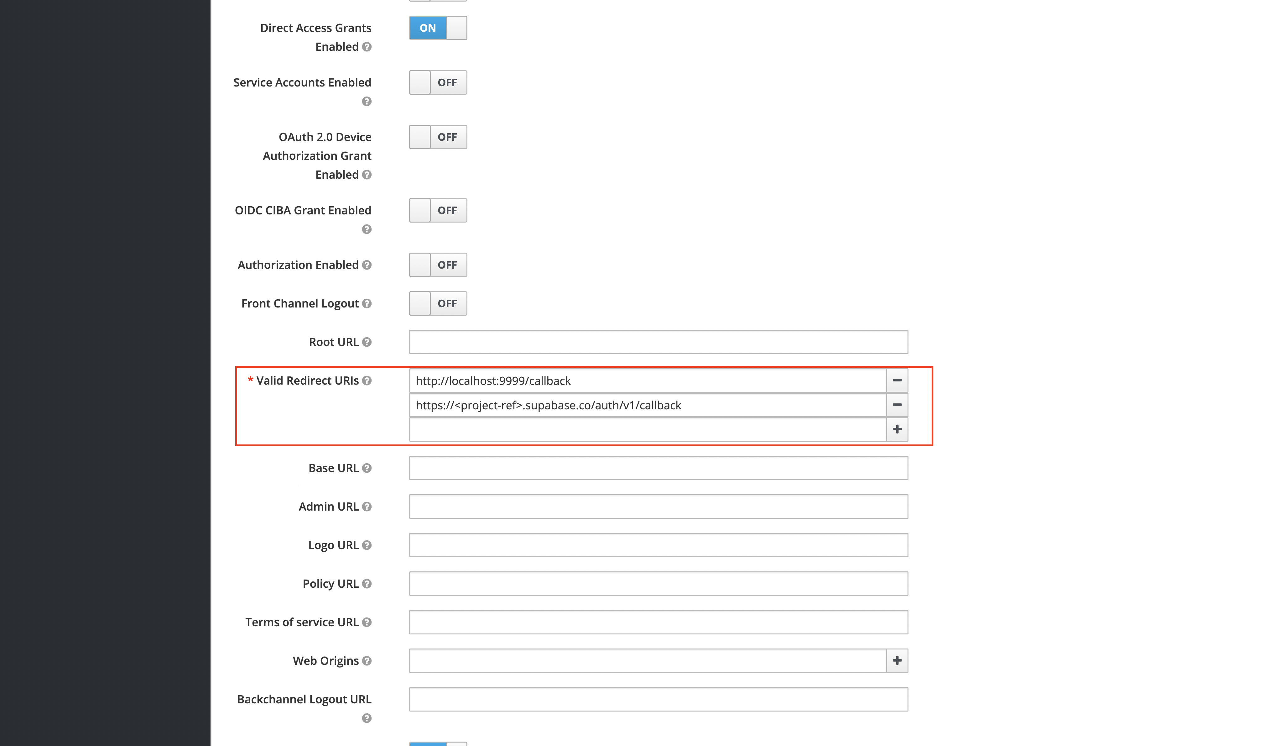 To enable Keycloak Auth for your project, you need to set up an Keycloak OAuth application and add the application credentials to your Supabase Dashboard.