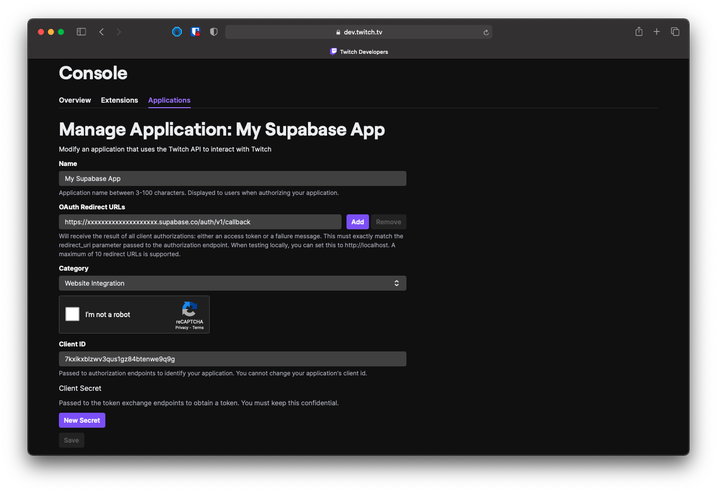 Add your Twitch credentials into your Supabase project#