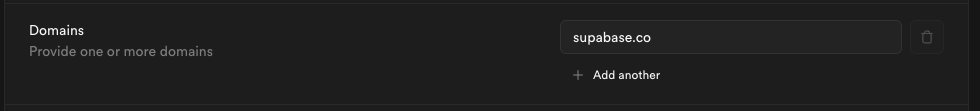 Enter one or more domains associated with your users email addresses (e.g., supabase.com).