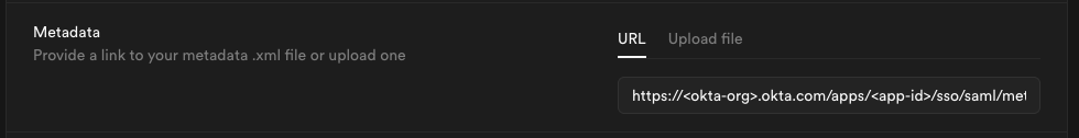 Enter the metadata URL you obtained from Step 6 into the Metadata URL field: