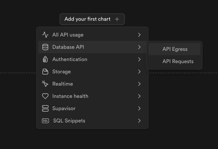 - Example: Custom Reports -> Add/Remove charts -> Database API -> API Egress.