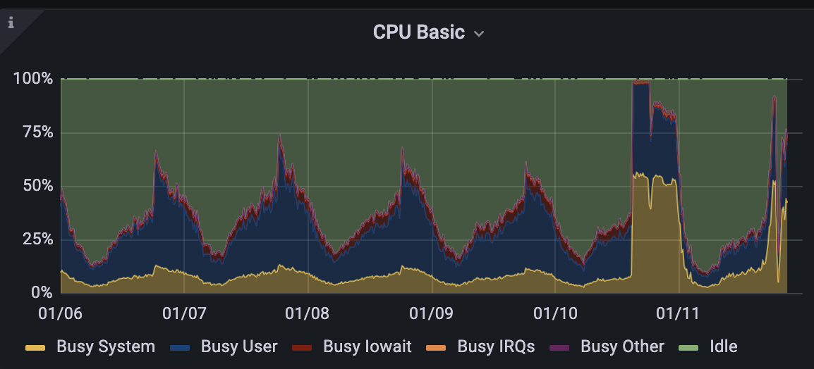 - Blue: It represents requests in user space and mainly reflects the CPU usage from regular queries. For optimization tips, check out the links at the end of the page.