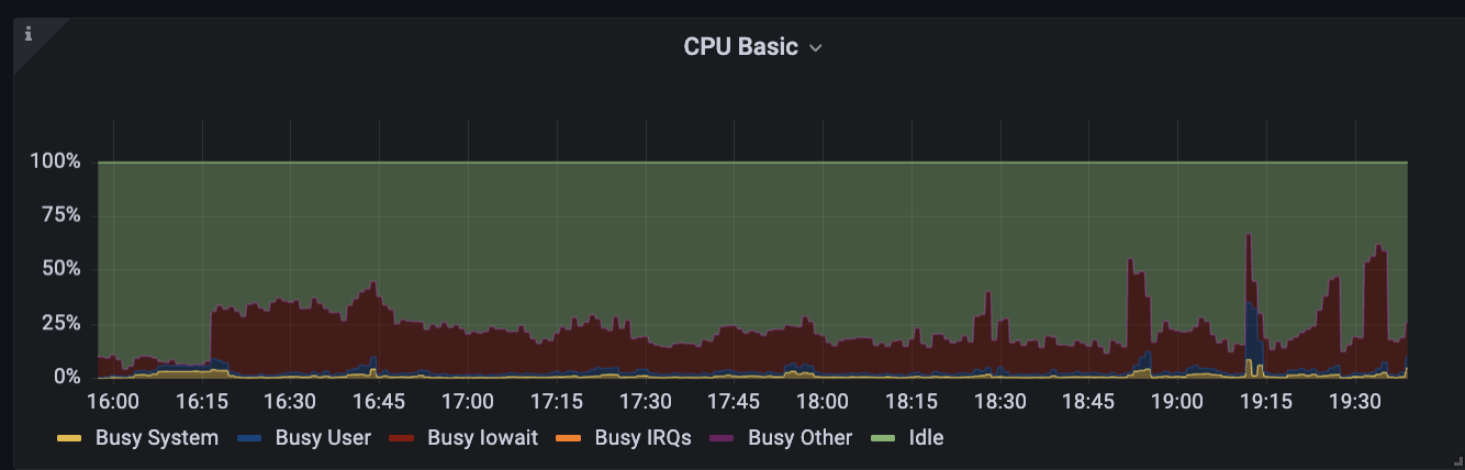 As a side-effect, its CPU is encumbered by heavy Busy IOWait activity: