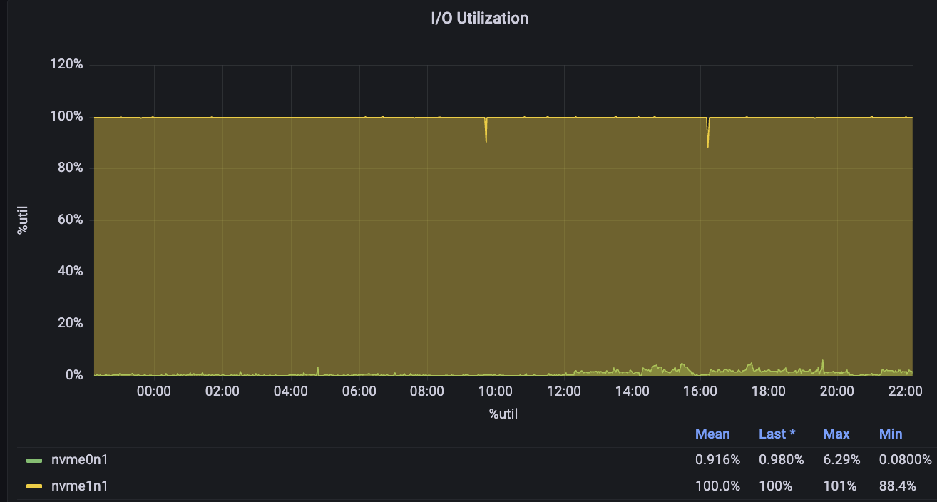 This example shows a 16XL database exhibiting severe IO strain:
